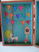 Then on the inside I used elements from my Woodland Whimsies CD, all coloured with Promarkers (including the strip of grass which I cut and coloured by hand) to create a 3D 'Home' scene - I love to make 'Home' themed things, probably because it's my favourite place in the whole world! :o)